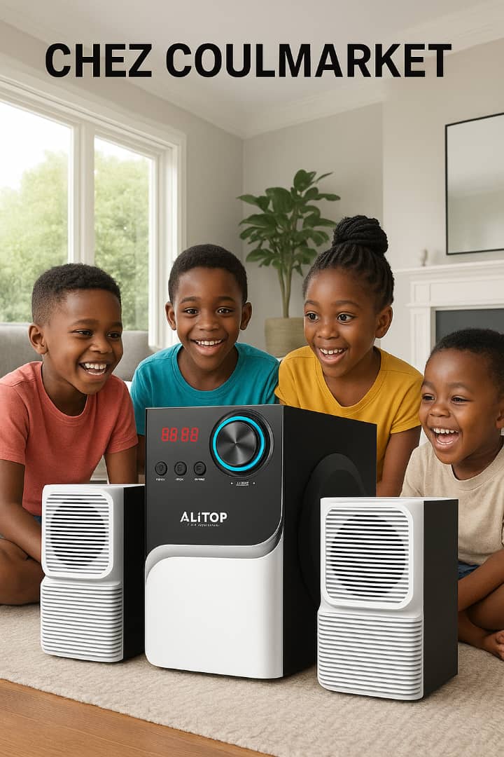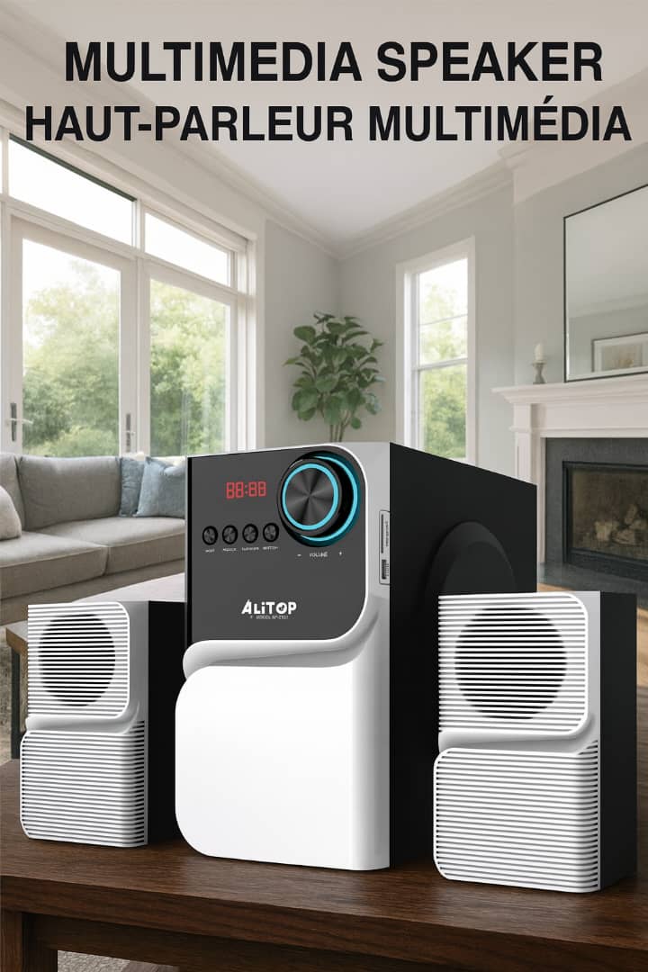 🌟Découvrez le système de son Alitop 🎶, un ensemble audio moderne et élégant qui transforme n’importe quelle pièce en un véritable espace cinéma ou concert privé. Son design noir et blanc futuriste, combiné à un affichage LED lumineux et une grande molette rétroéclairée, attire directement le regard ✨.